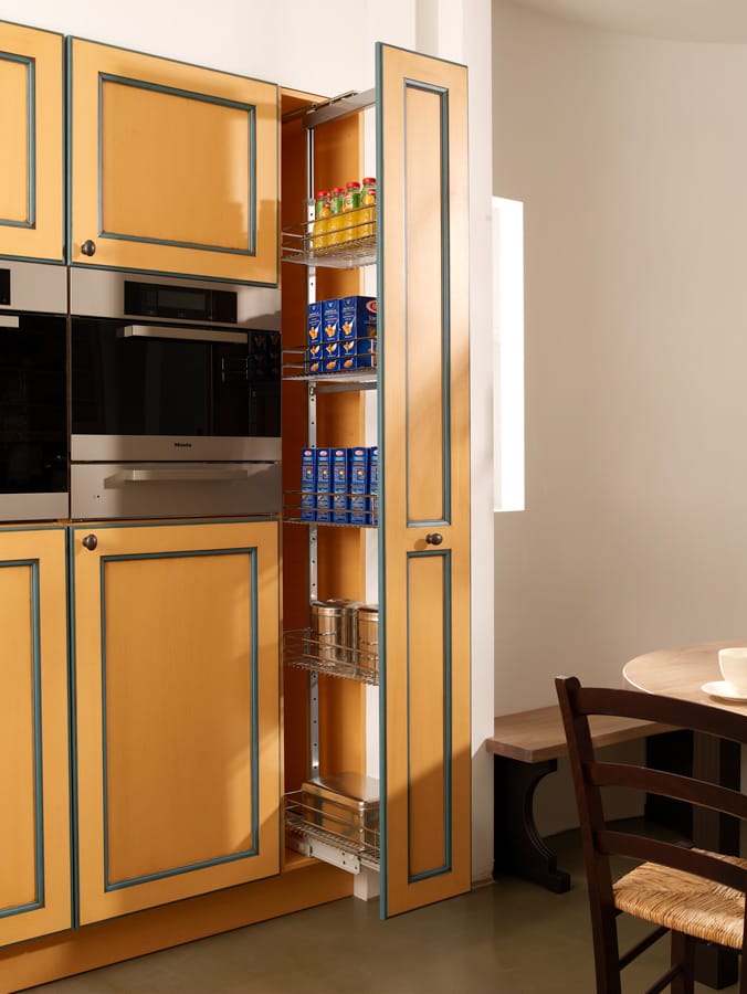 Контрастное сочетание ярких цветов (синего с оранжевым)  и идеально продуманная планировка кухни от производителя CAMARGUE придают ему уникальность. Во всех функциональных предметах кухни премиум класса прослеживается идеальное сочетание, за счет совпадающих по цвету элементов.